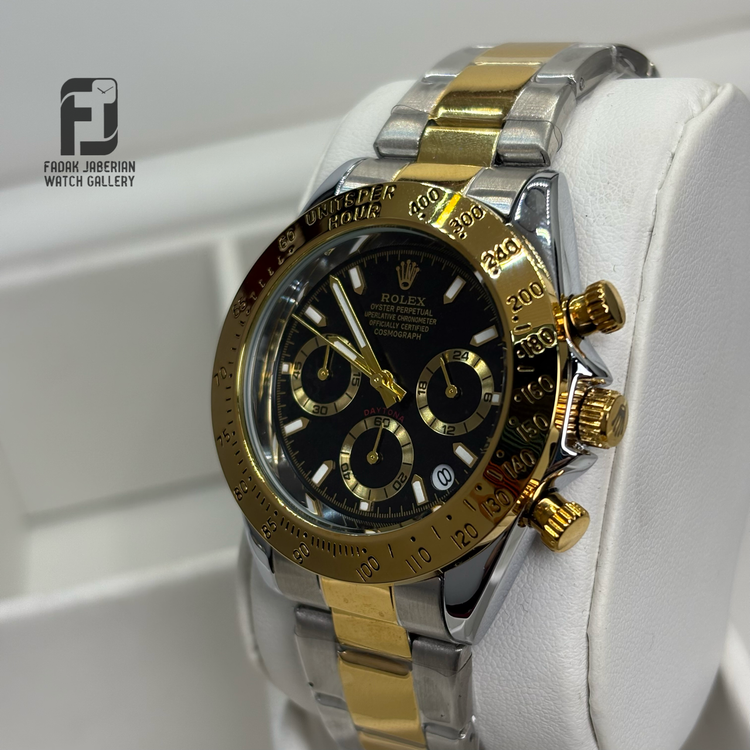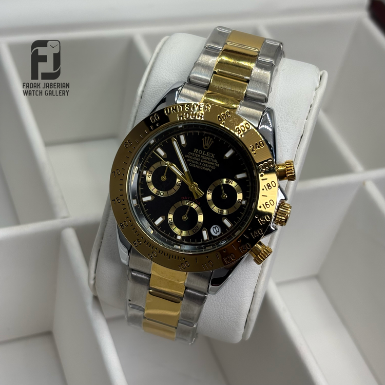ساعت مچی مردانه رولکس با طراحی شیک و استایل رسمی–کلاسیک، انتخابی ایدهآل برای آقایانی است که به ظاهر مرتب و جذاب اهمیت میدهند. ترکیب بدنه مقاوم با بند فلزی استیل، علاوه بر دوام بالا، جلوهای لوکس و مردانه به ساعت میدهد.