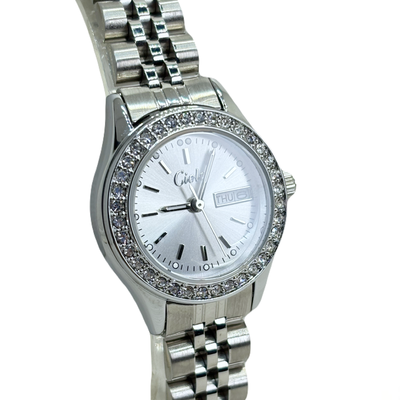 اگر دنبال یک ساعت ظریف و خاص برای استایل روزمره یا مجلسی هستید، ساعت زنانه ریز Cielo انتخابی جذاب و چشمنوازه. طراحی ظریف این مدل در کنار نگینکاری دور قاب، جلوهای لوکس و زنانه به ساعت داده و باعث میشه روی دست خیلی زیبا دیده بشه.