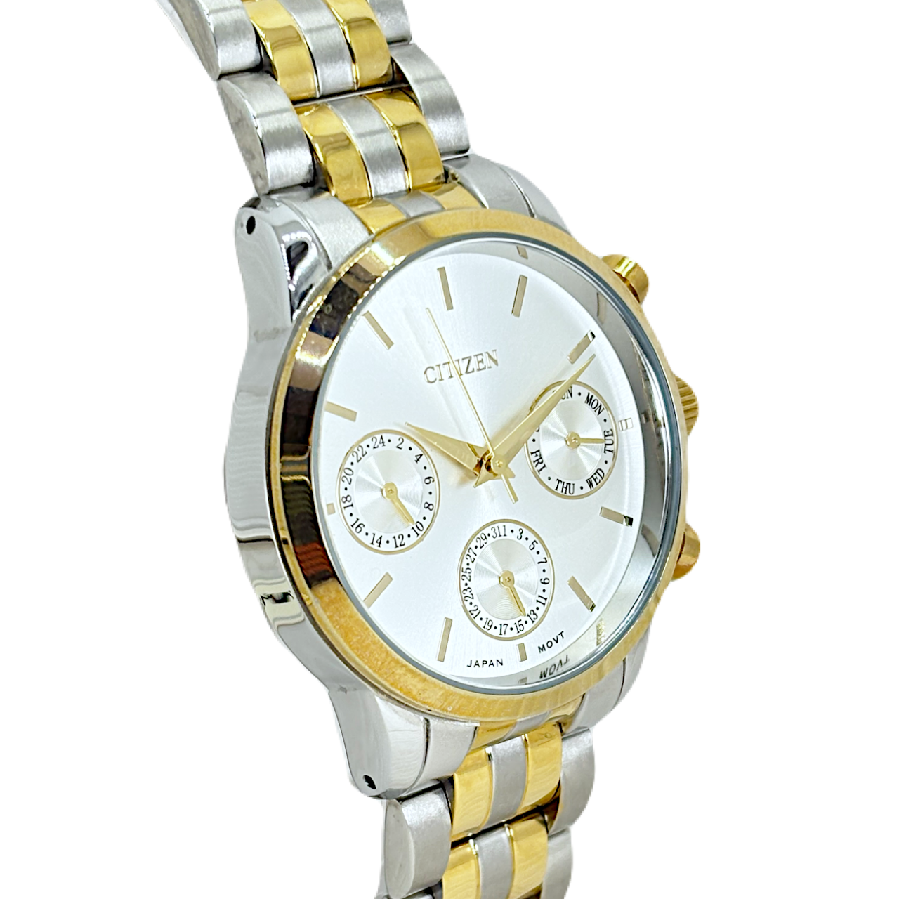 ساعت مچی زنانه سیتیزن سهموتوره با طراحی شیک و ترکیب رنگ طلایی و نقرهای، انتخابی ایدهآل برای بانوانی است که به ظرافت و کیفیت اهمیت میدهند. این ساعت با برخورداری از سه موتور فعال، دقت عملکرد بالایی داشته و در کنار نمایش تاریخ، جلوهای کلاسیک و در عین حال مدرن به استایل شما میبخشد.