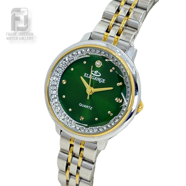 ساعت زنانه الگانس (Elegance) با طراحی ظریف و کلاسیک، ترکیبی از زیبایی و کیفیت است. این مدل با بند استیل مقاوم و صفحهای شیک با شیشه تراشدار طراحی شده که با انعکاس نور، جلوهای لوکس و چشمنواز به ساعت میبخشد. انتخابی ایدهآل برای استفاده روزمره و همچنین مراسم رسمی.