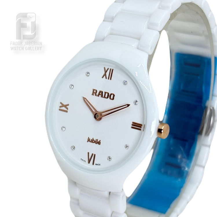 ساعت مچی زنانه رادو با طراحی شیک و لوکس، انتخابی خاص برای خانمهایی است که به ساعتهای متفاوت و چشمگیر علاقه دارند. این مدل بهصورت تمام سرامیک براق ساخته شده و جلوهای درخشان و بسیار زیبا روی دست ایجاد میکند.