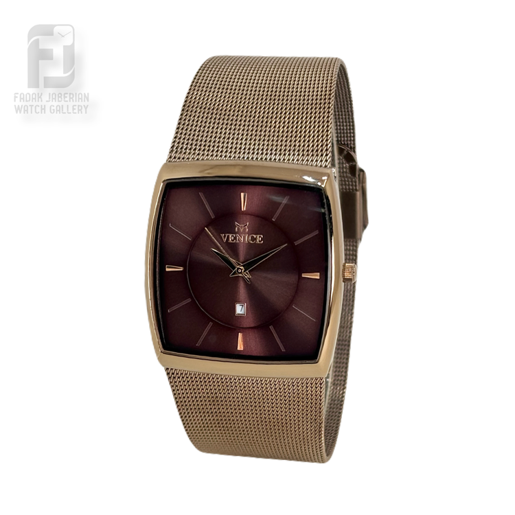 ساعت مچی ونیز با طراحی چهارگوش خاص و کلاسیک، انتخابی ایدهآل برای آقایانی است که به استایل رسمی و متفاوت اهمیت میدهند. این مدل اورجینال بوده و از کیفیت ساخت بالایی برخوردار است. مجهز به نمایشگر تقویم برای استفاده روزمره بوده و بند حصیری فلزی آن علاوه بر زیبایی، راحتی و دوام بالایی را فراهم میکند. طراحی چهار گوش و صفحه شیک این ساعت، آن را مناسب استفاده روزانه و مجالس رسمی کرده است
