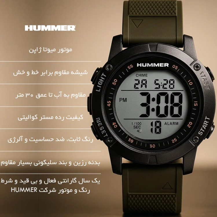 با طراحی مدرن، قابلیتهای کامل و کیفیت ساخت قابل اعتماد، ساعت هامر دیجیتال انتخابی هوشمند برای هر مردی است که دنبال استایل و عملکرد در کنار هم میگردد.