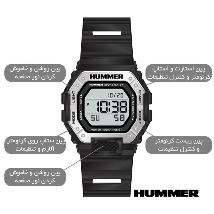 با طراحی مدرن، قابلیتهای کامل و کیفیت ساخت قابل اعتماد، ساعت هامر دیجیتال انتخابی هوشمند برای هر مردی است که دنبال استایل و عملکرد در کنار هم میگردد.