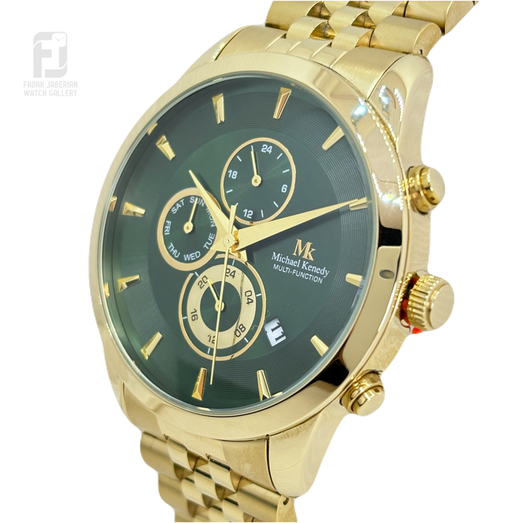 ساعت مچی مردانه مایکل کندی (Michael Kenedy) سه موتوره با طراحی شیک و مدرن، گزینهای مناسب برای آقایانی است که به استایل، کیفیت و دقت اهمیت میدهند. طراحی صفحه حرفهای در کنار بدنه خوشساخت، این ساعت را به انتخابی مناسب برای استفاده روزمره و رسمی تبدیل کرده است.