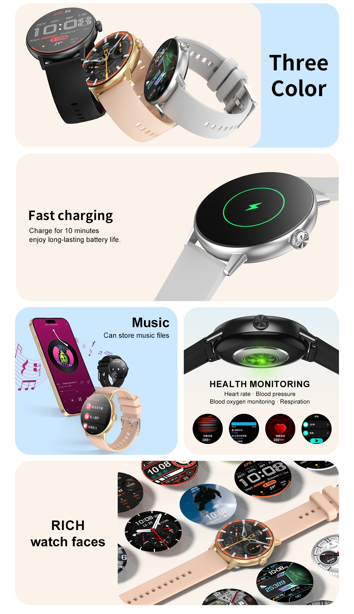 با ۴ گیگ حافظه داخلی میتونی موزیک، عکس و ویدئو ذخیره کنی و حتی به ایرپاد وصل بشی. قابلیت اتصال به کامپیوتر برای انتقال فایل هم داره. پشتیبانی از اندروید و iOS، نمایش تماسها، پیامک و نوتیفیکیشن شبکههای اجتماعی رو کامل انجام میده و حتی میتونی تا ۲۰۰۰ مخاطب ذخیره کنی.