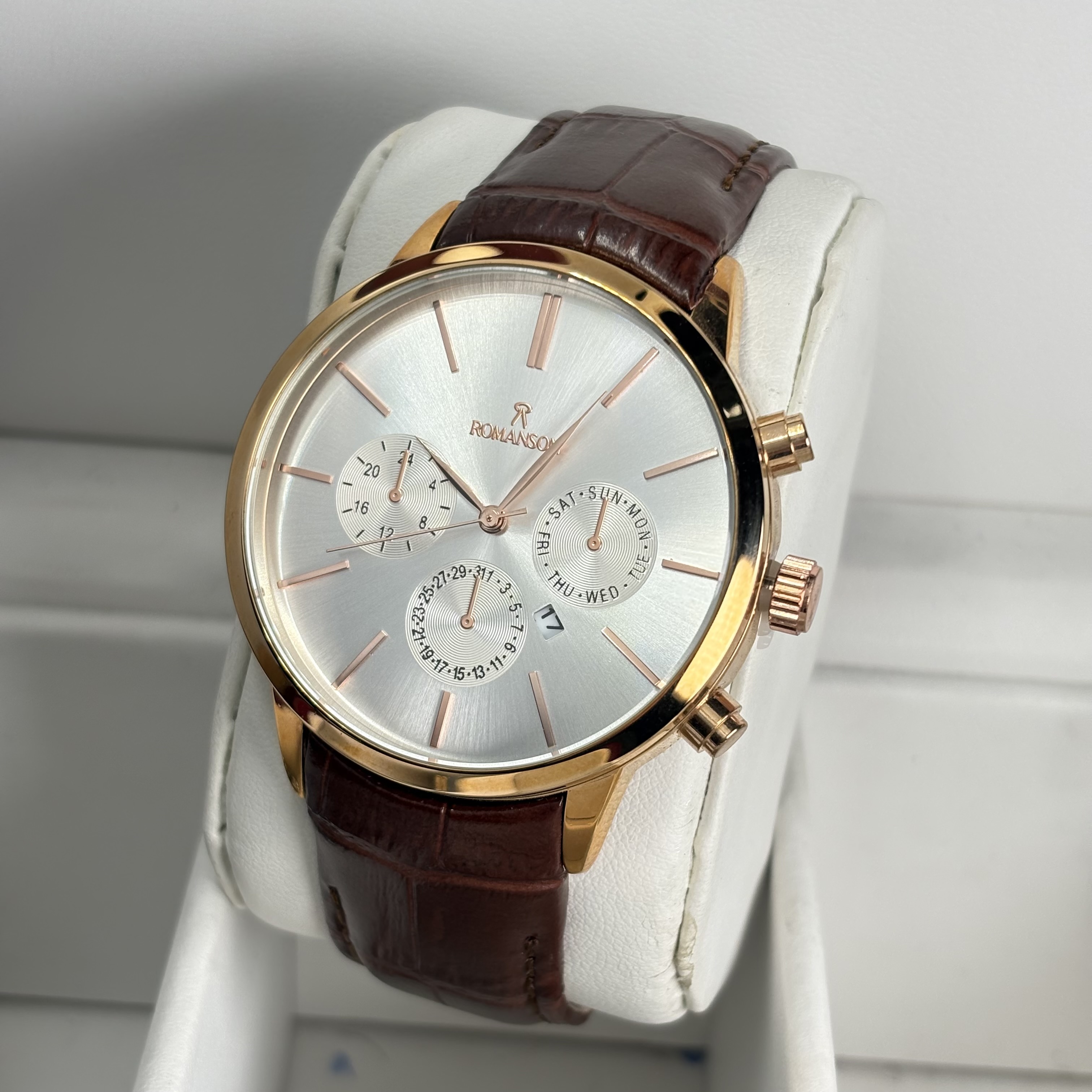ساعت رومانسون مردانه بند چرمی تقویمدار یک انتخاب هوشمندانه برای کسانی است که ظاهر کلاسیک و شیک را دوست دارند اما نمیخواهند هزینه زیادی پرداخت کنند. طراحی این ساعت با بند چرمی باکیفیت و صفحهی ساده اما چشمنواز باعث میشود در هر موقعیتی از مهمانی رسمی تا استایل روزمره بدرخشید. وجود تقویم روی صفحه کمک میکند همیشه تاریخ روز در دسترستان باشد — جزئیاتی که در استفاده روزمره واقعا به چشم میآید