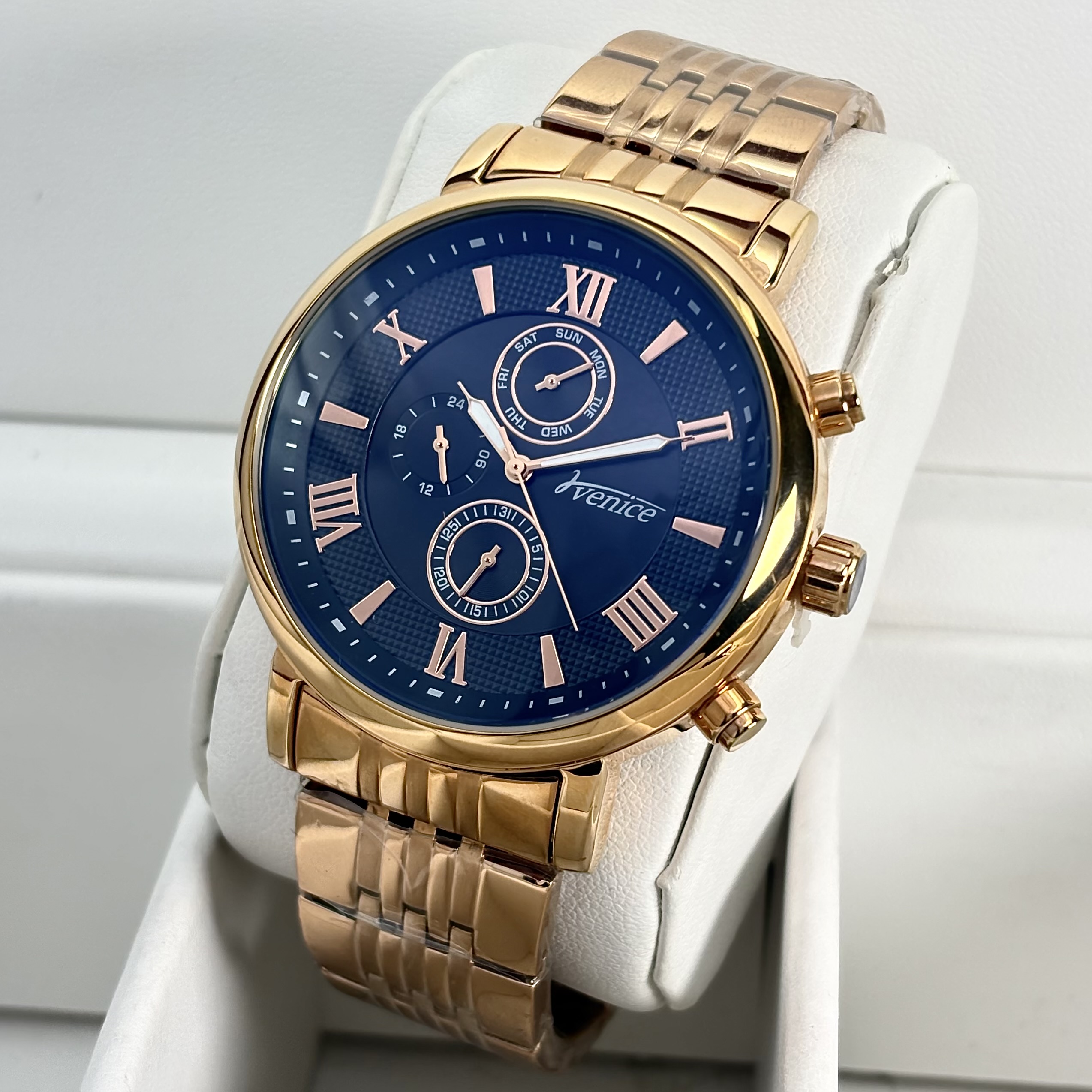 ساعت مچی مردانه ونیز سهموتوره اورجینال با طراحی دقیق و صفحهای پرجزئیات، انتخابی شیک برای آقایانی است که به ظاهر ساعت و عملکرد آن به یک اندازه اهمیت میدهند. وجود سه موتور فعال، جلوهای حرفهای و مردانه به ساعت میدهد و آن را از مدلهای ساده متمایز میکند.