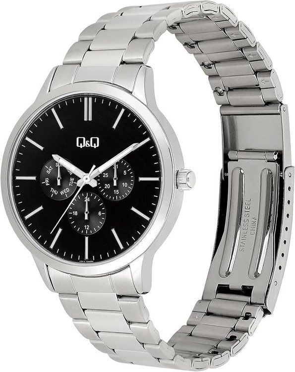 کیو اند کیو (Q&Q) این بار یه ساعت شیک و اسپرت رو با مدل A01A-004PY روانه بازار کرده که طراحی تمام مشکیاش حسابی تو چشمه. با قاب ۴۲ میلیمتری که نه خیلی بزرگه نه خیلی کوچیک، روی مچ خیلی خوشنشین و باکلاس به نظر میاد. بند استیل مشکیاش با صفحه همرنگش هارمونی جذابی ساخته و سابدایالهای خاکستری روی صفحه مشکی، ظاهر اسپرت و در عین حال رسمی بهش داده. جالبه بدونید این ساعت با وجود قیمت مناسبش، ضدآب تا عمق ۵۰ متره و شیشه ضدخشش خیالتون رو از بابت استفاده روزمره راحت میکنه.